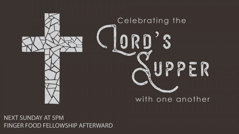 Our next Lord’s Supper Service will be this Sunday, November 30 at 5pm. Join us as we remember what our Lord has done for us.