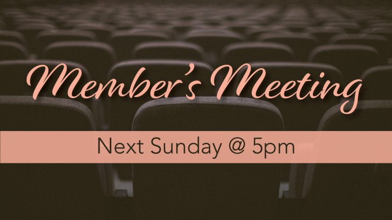 Our next Member’s Meeting will be next Sunday night, February 1 at 5pm. We will be giving ministry updates, as well as other family matters. All members are encouraged to attend.