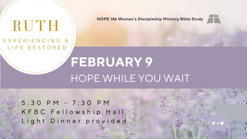 Our next Women’s Ministry Bible Study will meet on Monday night, February 9 at 5:30pm. A light dinner is provided. “Ruth: Experiencing a Life Restored” will be the study this year. All women are invited to join us. We will meet on the following Mondays: