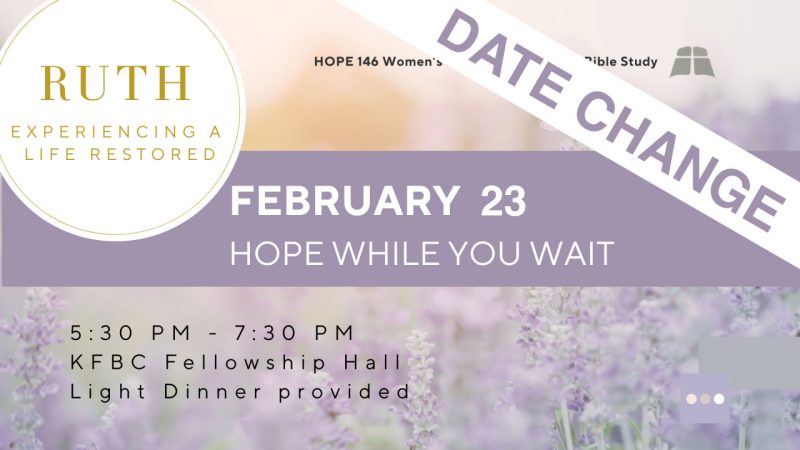 Our next Women’s Ministry Bible Study will meet on Monday night, February 23 at 5:30pm. A light dinner is provided. “Ruth: Experiencing a Life Restored” will be the study this year. All women are invited to join us. We will meet on the following Mondays: